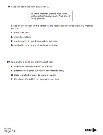 choice based on five passages of varying genres. From day one, our instruction supports success on this assessment. Daily exit tickets reflect its formatting. Our sentence stems in the read aloud align to the question stems on the assessment.