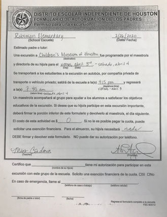 This visit was scheduled to be on April 3rd. Due to COVID-19, The Children's Museum cancelled the trip. Prior to this decision, I had conducted the distribution and communication of the event to students and their families. Permission slips, media release forms, medical release forms, and emergency contact forms were sent out and returned to teachers. The experience accepts the first thirty girls to send in their forms, and we had seventeen girls already turn in all four of their forms.